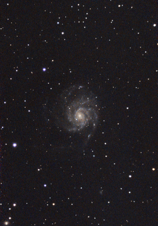 En revanche, je parviens à sortir de la Grande Ourse cette image (approximative, mais bon) de M 101. Elle mériterait bien davantage de pose !