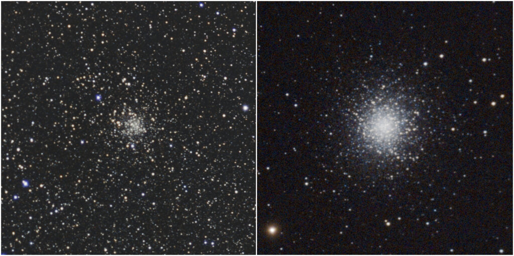 Commençons par le commencement : Messier 71 (ou M 71, pour les intimes) est un amas globulaire. Un énorme paquet de milliers de vielles (très vieilles, même) étoiles. Un peu comme M 13 ou M 5, pour citer les plus connus. M 71 est juste moins gros que ces derniers. Beaucoup moins gros, même. Avec 43 000 masses solaires sur la balance, il pèse 15 fois moins lourd que l’amas d’Hercule, vingt fois moins que M 5. Et c’est vrai qu’à l’oculaire, la comparaison ne lui est pas forcément flatteuse…