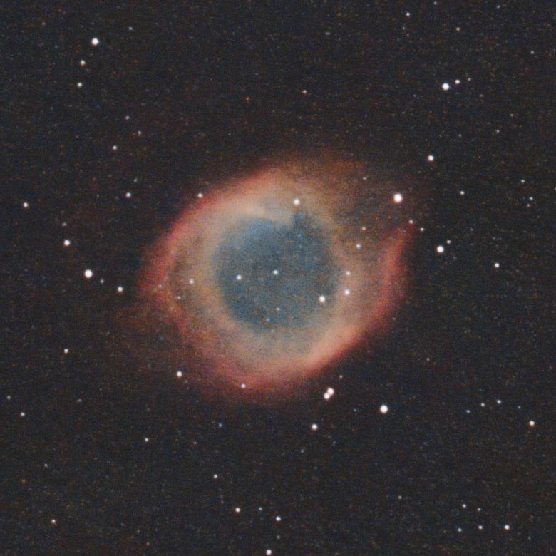 Le premier objet rencontré dans le Verseau est la Nébuleuse Helix. Une nébuleuse planétaire qui sait, suivant les occasions, être spectaculaire … ou fantomatique. Basse sur l’horizon à nos latitudes, dans un coin de ciel qui compte peu d’étoiles brillantes, son repérage sans GoTo est souvent très aléatoire : Fomalhaut est à 10° plus au sud, Delta Capricorne 10° plus à l’ouest. Il faut donc cheminer en partant d’étoiles peu brillantes. Il arrive qu’on se perde en chemin…